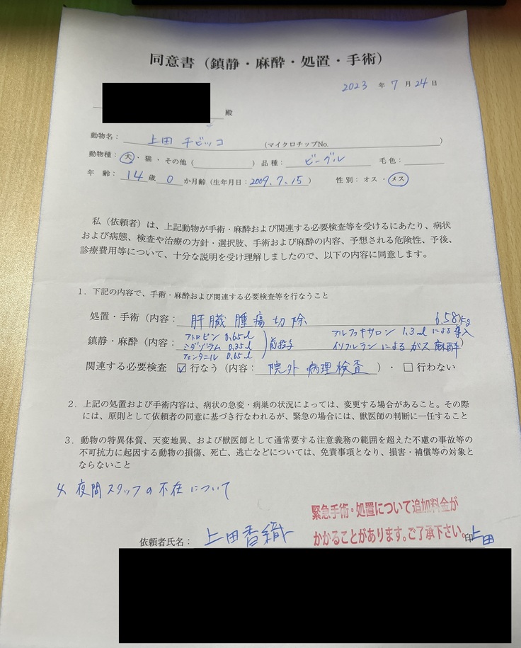 ページ上に記載している診断書や診療明細書などの資料は全て動物病院からの掲載の許可を得ております。