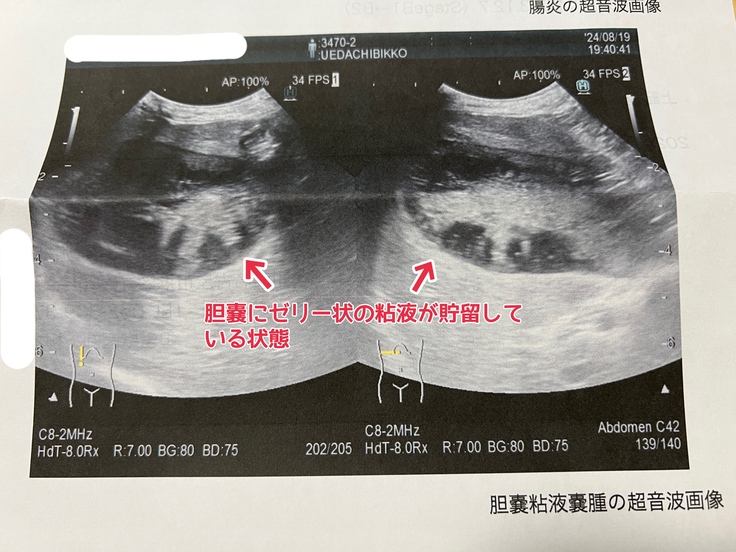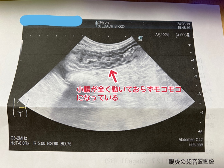 ↓現在治療中の急性胃腸炎のエコー検査画像 2024.8.19.