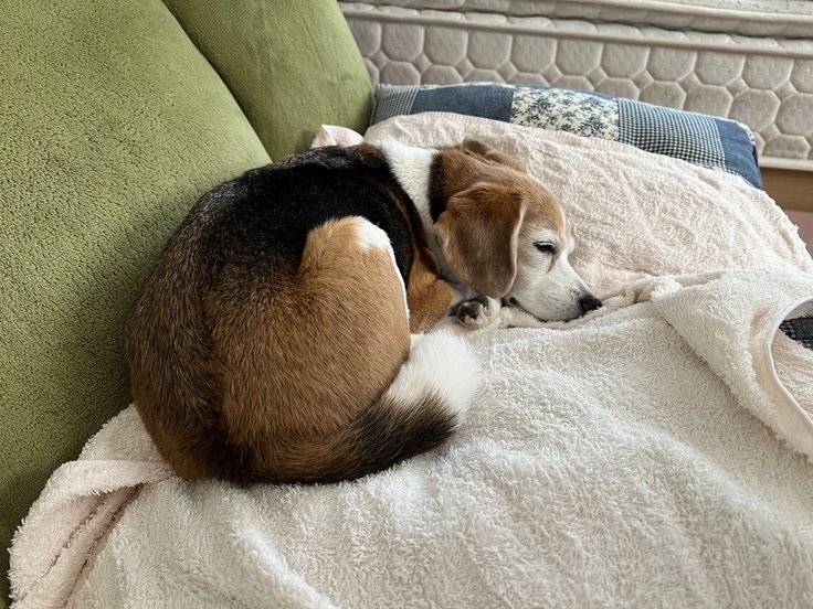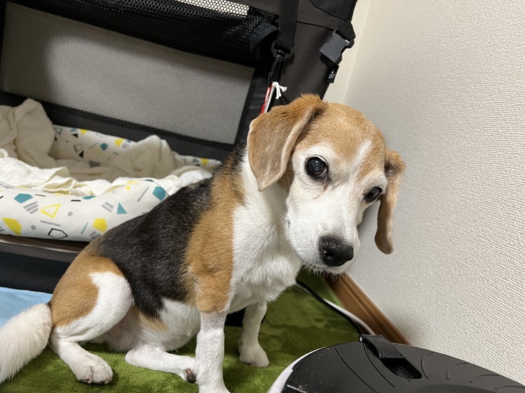 昨夜のお散歩はしんどそうなので5分だけお外の匂いを嗅いで抱っこで帰って来ました。