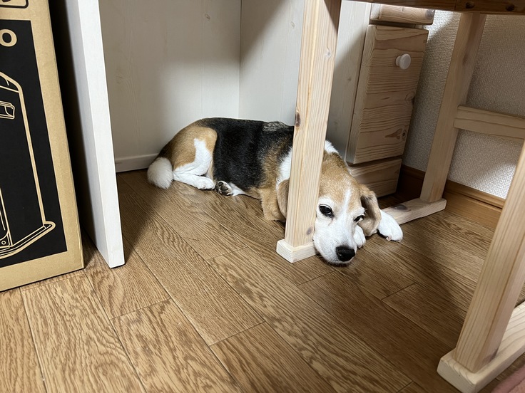(お昼までドレッサーの下に戻るので、私も起きて待機してました)