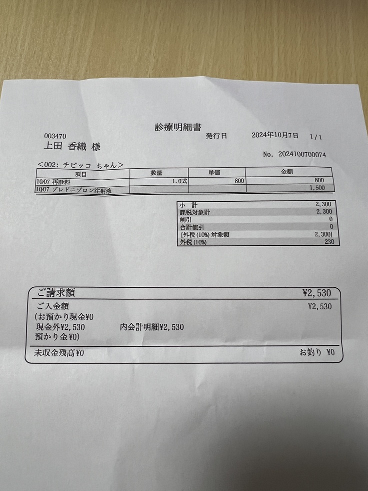 昨日動物病院にてステロイド剤の注射投薬を行い、帰って来てからの経過になります。