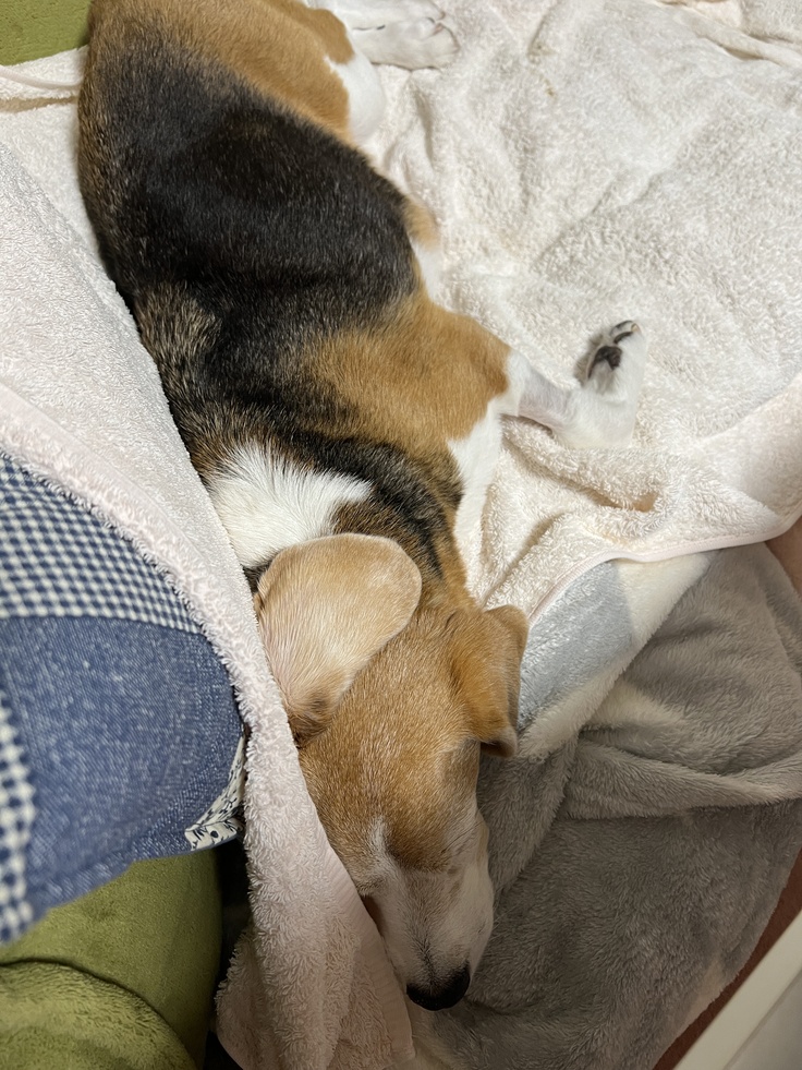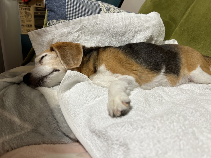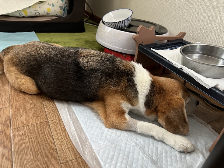 動物病院から帰って来てから腸に残っていた下痢が全部出たところでちょっと楽になったのか、ものすごいご飯と水の催促でしたが、心を鬼にして何もあげなかったら疲れたのか寝てしまいましたw