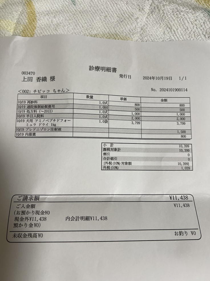 毎日大変だけど、下痢が少しでも落ち着いてくれてるのであれば半日入院して一歩前進と思えます。