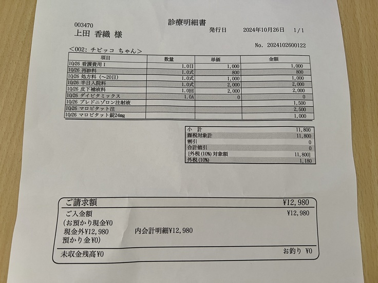 そして病院からも念のため担当獣医師に連絡しておきますとの事で、10/28の朝一で担当獣医師の予約を取ってもらえました。