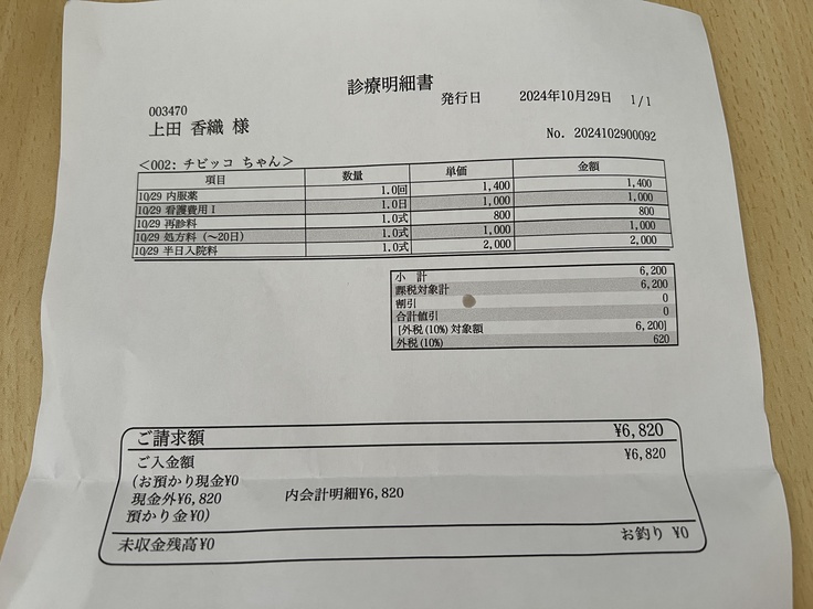 今日は担当獣医師がお休みの為、今朝は別の獣医師で10時の預かりになりました。