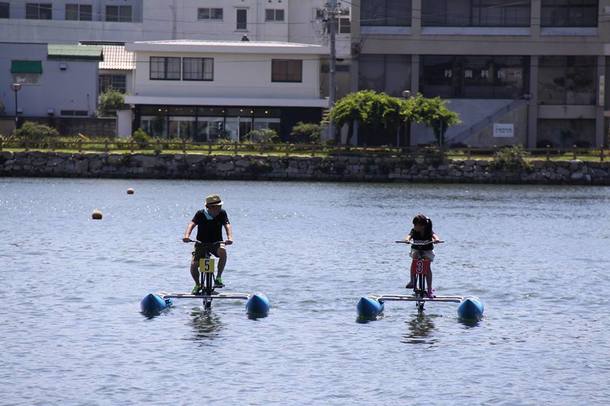 見慣れたお堀の風景に浮かぶ海上自転車。
