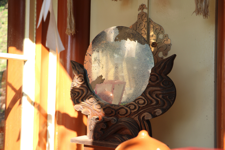 正面の「御鏡」が長年の雨風により剥がれておりますので、新調致します。