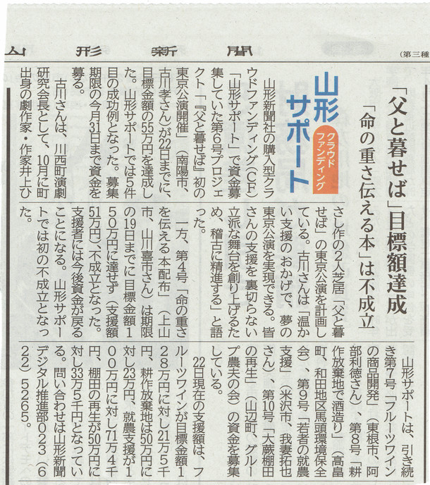 本日5/23の山形新聞に掲載されました。ぜひご覧頂ければありがたいです。