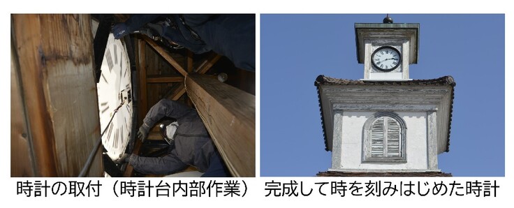 何度も修理して、とうとう動かなくなってしまった大時計。時計の構造上の問題点を改善し、劣化で膨張した時計盤を交換して、2024年4月3日、やっと正確な時を刻み始めました。それから約1年間が経ちましたが、しっかり動き続けています。