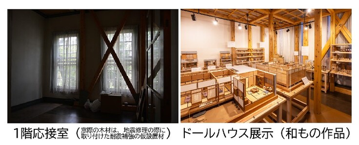 1階は「致道ミニチュアコレクション展示室」として一新しました。地震被災の部分修理で「通常の展示室利用」は難しかったのですが、ドールハウス作品の特徴を活かした展示方法により、郡役所建物外観と展示作品内容がマッチした、新たに魅力的な空間が生まれ、2024年4月27日(土)より再公開を始めました。
