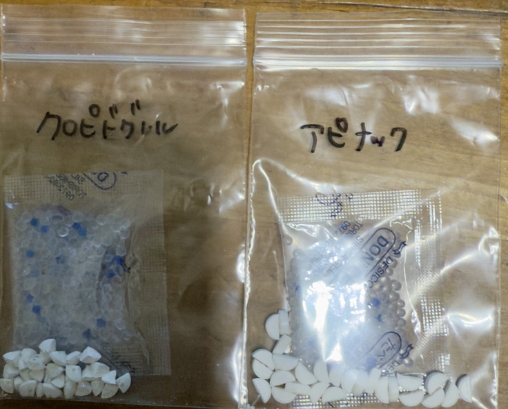お薬は前回と同じくアピナック2分の1錠とクロシドグレル4分の1錠を1日1回が30日分処方されました。