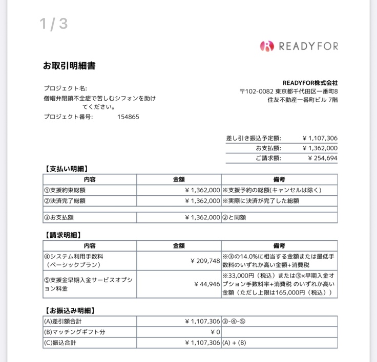 以前に終了報告に出させて頂いた入金予定のご報告ですが実際には下記となります。