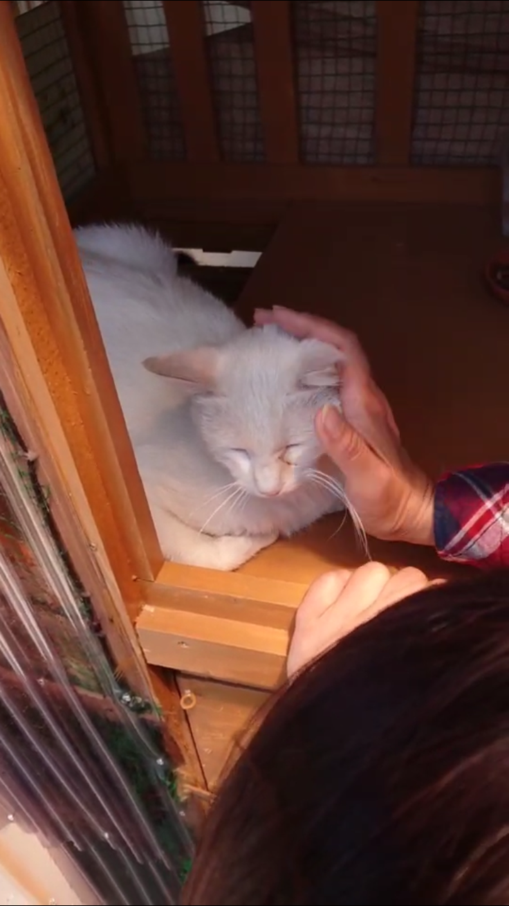 チビちゃんと声をかけると鳴いて壁越しにスリスリしてくれました。