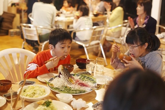 夕食は、宿の旦那さんが漁師という事もあり、大漁のお魚や貝料理に、とても喜ばれていました。