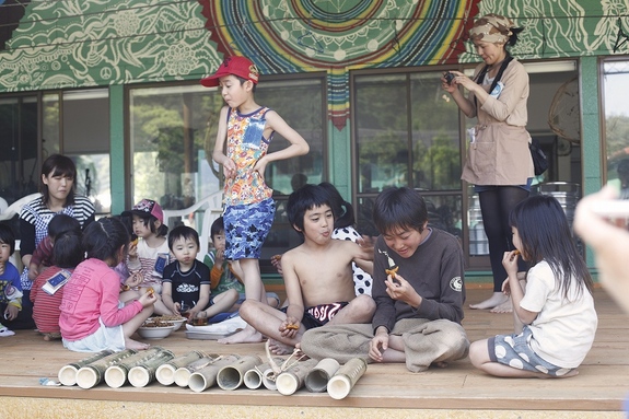 子供たちは、木、貝、竹を使っての楽器作り、音遊び みんな夢中になりました。