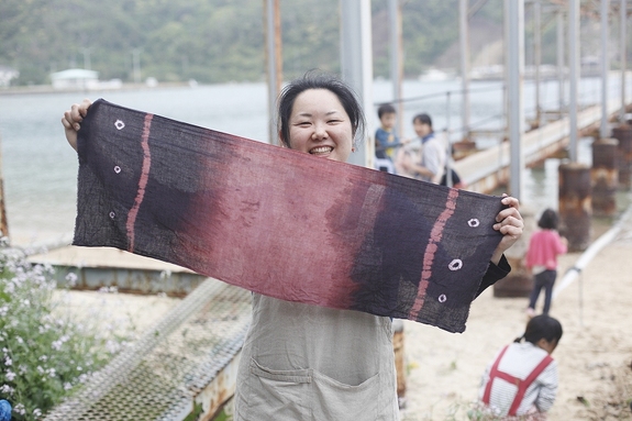 子供たち、お母さんたち、希望スタッフまで参加しての てぬぐい制作でした。