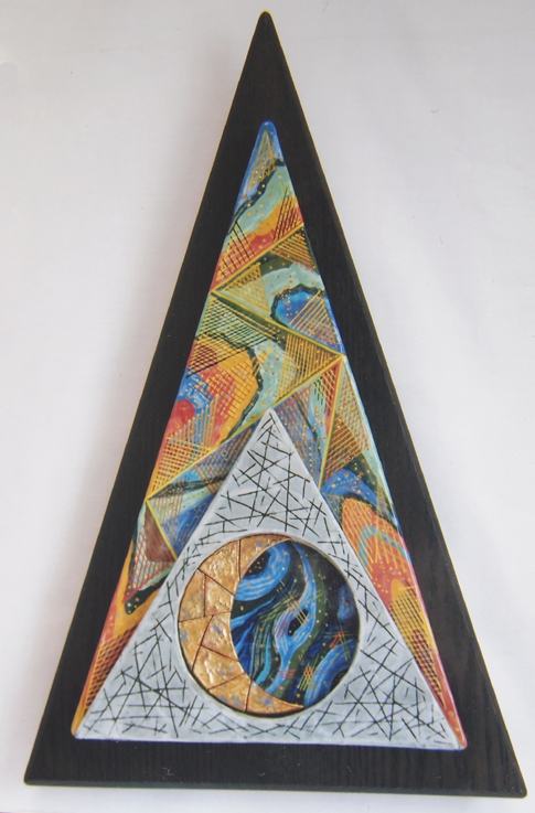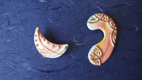 焼き物とはとても思えないような透明感のある色彩に、惹きつけられてしまいます。溝口さんの「夢想する月影」と題された陶板作品を合わせて紹介させてください。