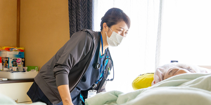 また、地域包括ケアシステムへの移行が進められる中で、私たちの医療体制も時代の変化に対応する必要がありました。お一人おひとりの想いに寄り添うことができるよう、皆様のもとに「出向く病院」として、医師がご自宅で診察する訪問診察、訪問看護・訪問リハビリテーション、歯科訪問診療など、病院の外でもさまざまな角度からサポートを行っています。