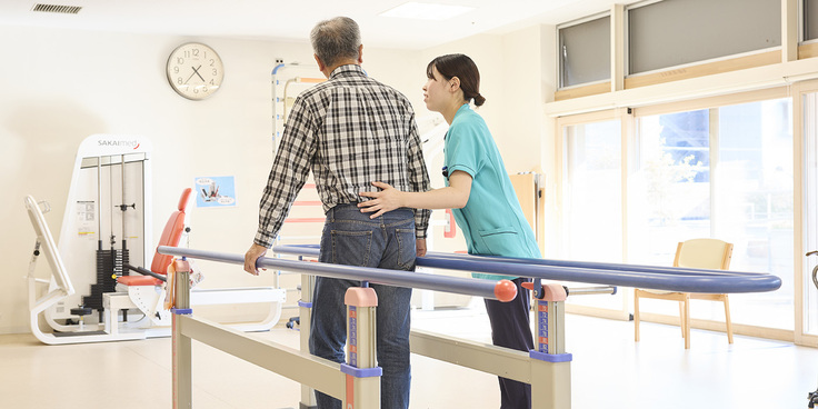 地域の「マイホスピタル」になるための取り組みは病院の中だけではありません。デイケアセンター、訪問看護ステーション、介護老人保健施設なども運営し、特に「在宅医療」「リハビリテーション」「歯科」に力を入れています。