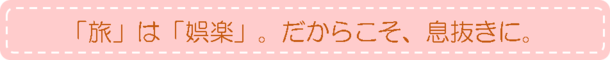 「旅」は「娯楽」です。でも、そんな息抜きが大切だと思っています。