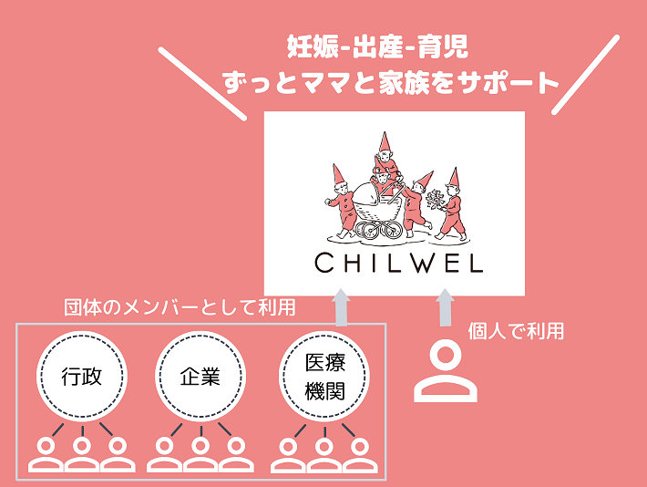 『CHILWEL』はこのように、個人で利用するだけでなく、より多くの行政や企業にグループ会員として導入いただくことで、ご家庭の経済力に関わらず、誰もが平等に専門家のケアを受けられる産前産後支援の実現、ひいては安心して産み育てられる環境の整備につながります。