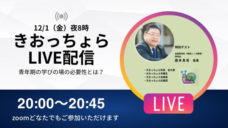 12/1金曜日の夜8時から、zoomにて公開ライブを行います。