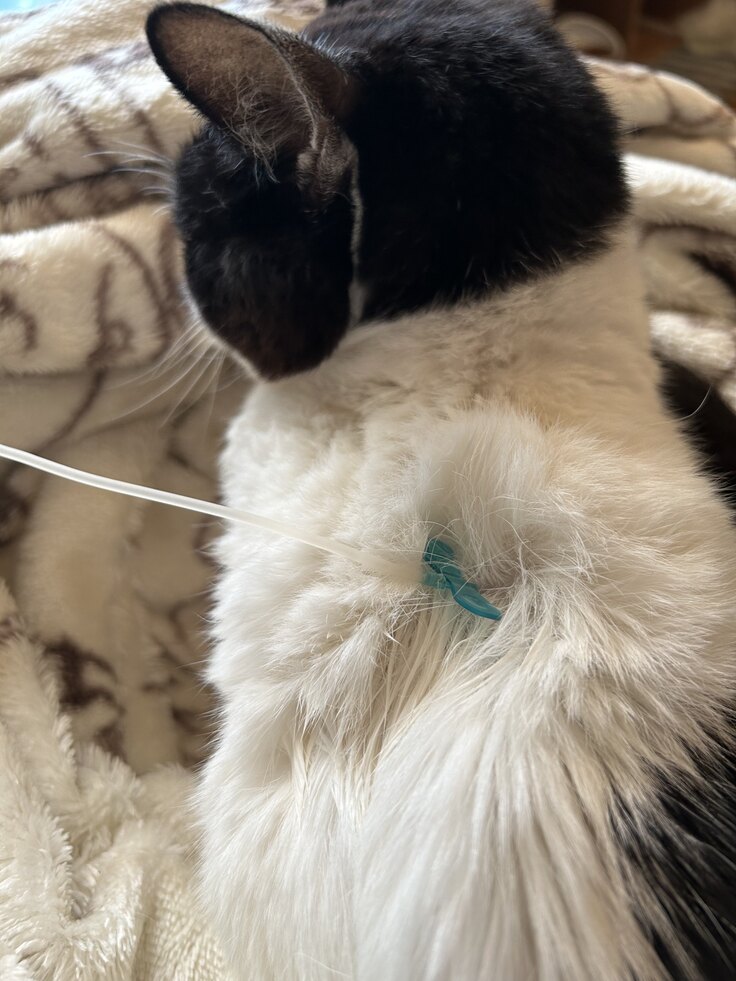 点滴中はひたすら撫でまわして、動かないように話しかけるようにしてます。