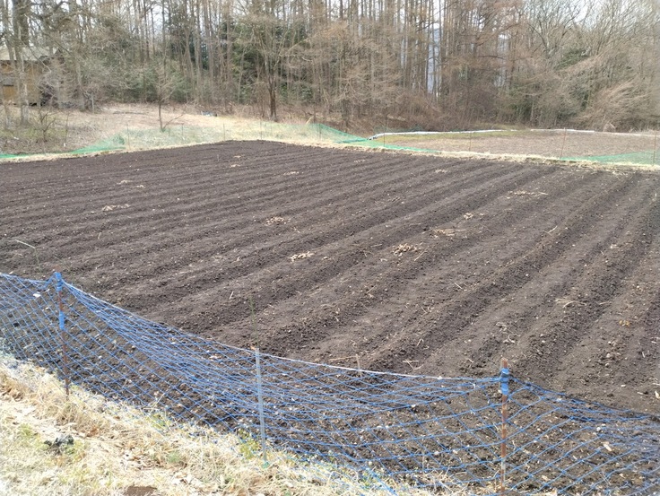 男爵、キタアカリ約200個ずつの種芋は、別々の畑に植え、管理が生産が始まりました。じゃがいもは連作ができないため、来年は別の作物を生産することになります。そのため、今年はたくさん採れるように畑いっぱいに植えました。
