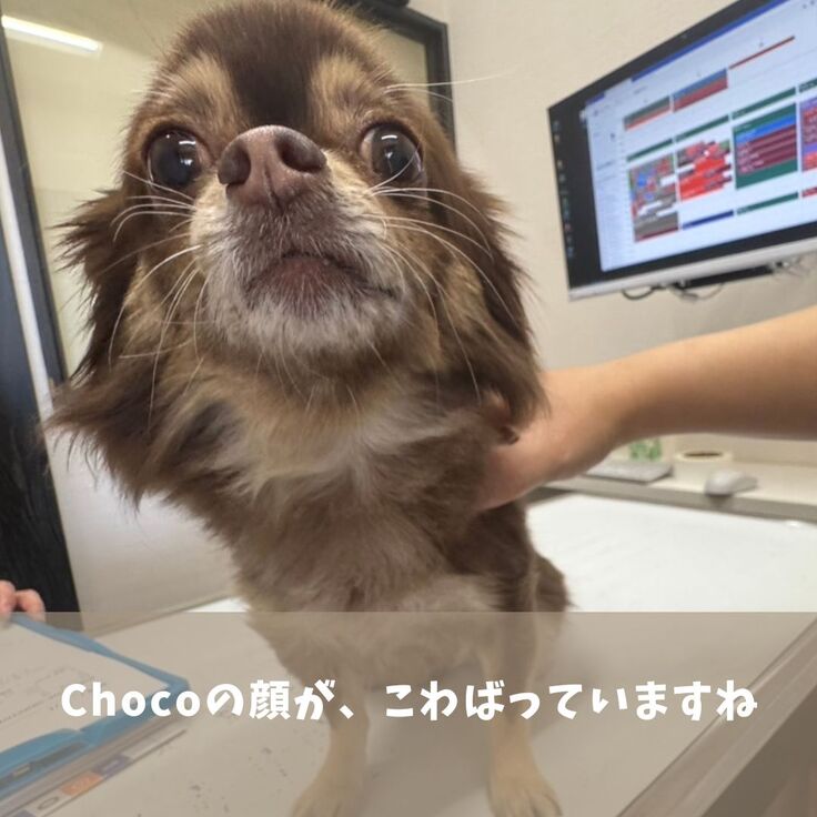 Chocoは診察台の上ではビクビクしちゃうけれど、頑張ってます。