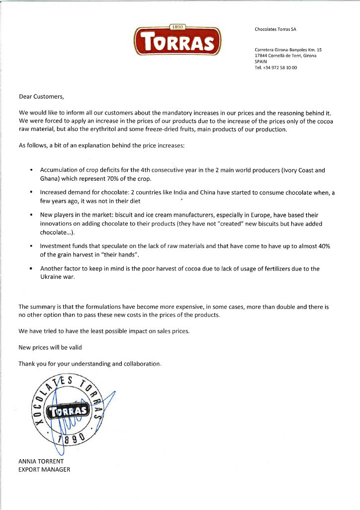 スペインのパトリシアから、突然の値上げの連絡が。。。