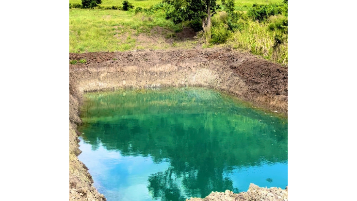 チョコリコ農園には20m×10mほどの広さの溜め池を掘りました