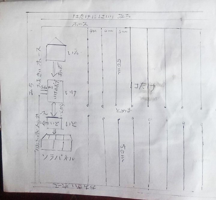 現地スタッフのポールが手書きした設備のレイアウト図を貼っておきます。