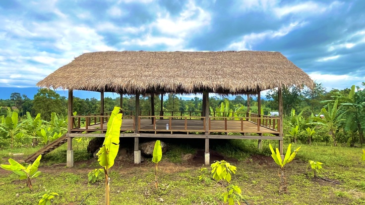 お陰様で相変わらずハードな行程ながら、とても楽しく充実した時間を過ごすことができたのですが、10月24日(金)にサムロートのチョコリコ農園で、完成したガゼボ(スタッフの休憩スペース)をようやく自分たちの目で見ることができました!