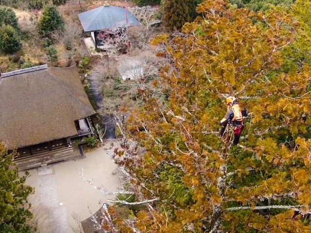 ご支援していただいたみなさまのおかげで、杉の大木への処置を行うことができました。
