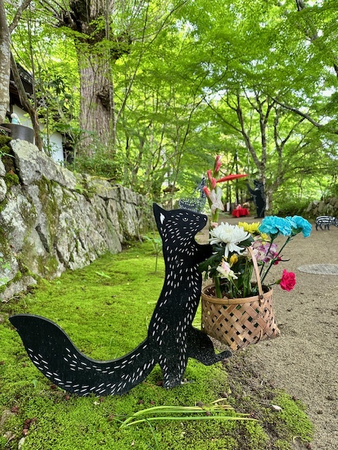 Blumen Fest=花祭り。参道でたくさんのお花を持った動物たちが皆様をお待ちしております。動物たちと一緒に本堂までお花を届けてください。