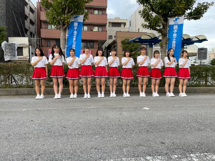 ▲当青年部より誕生した銚子市公認キャラクター「ちょーぴー」を始め、千葉県マスコットキャラクター「チーバくん」、印西市より「いんザイ君」、旭市より「あさピー」、東庄町より「コジュリンくん」が点灯イベントを盛り上げに来てくれました。