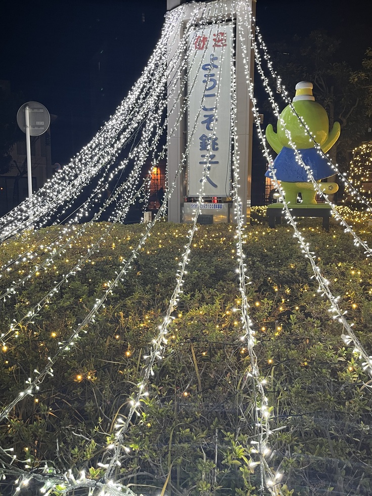 ▲青と白を基調にしたイルミネーション。駅前大通から見る銚子駅が綺麗でした。