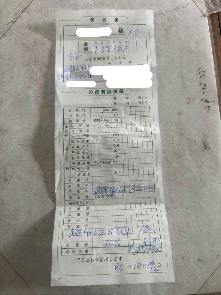予定していた手術代と異なってしまいますがご了承ください。
