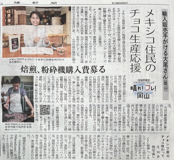 12月1日の山陽新聞の朝刊でクラウドファンディングの記事を掲載いただきました。
