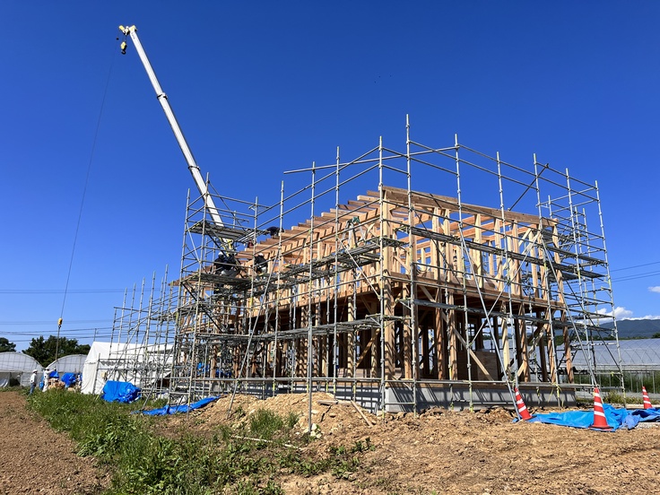 6月16日から柱が立ち始め、どんどん骨格が出来上がってきました。
