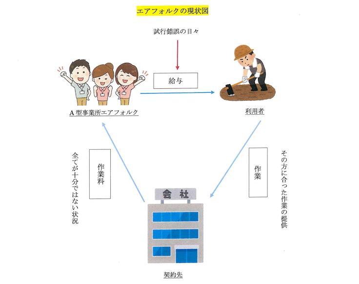 今現在事業所が厳しい状況にあります。そんな障がい者の方々の居場所でもあるエアフォルクを存続させていくため、又10年20年と事業所を続けていける事は今の障がいがある子供たちにとっても重要な事だと思います。その為にも新しい何かを始めて変化していかなければいけません。