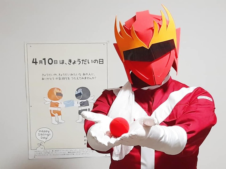 きょうだいのためのヒーロー「種まき戦隊シブレンジャー」の赤です。