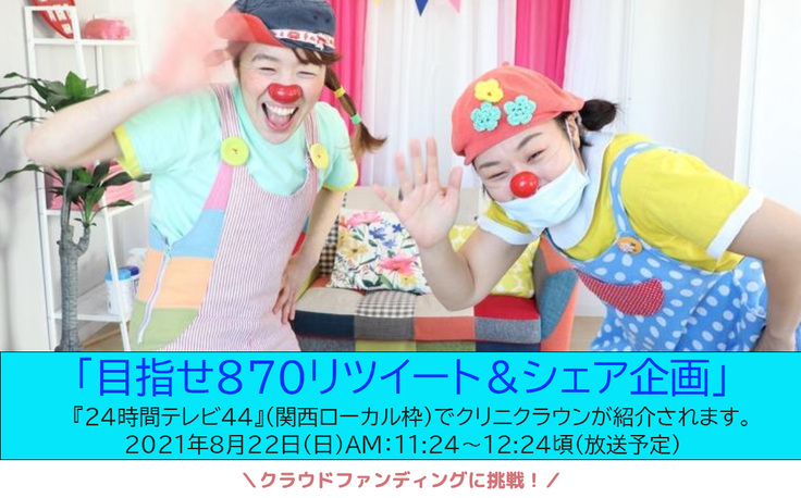 Twitter、FBで、24時間TVでの放送の告知とクリニクラウンのことを多くの人に知ってもらうために、「目指せ870リツイート&シェア」を企画しました!!