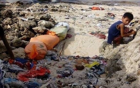 (ゴミの廃棄システムが機能しておらず荒れたままの海岸)