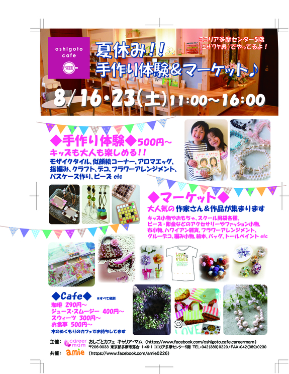 多摩地域周辺で活躍中のママ作家さんを中心に、ハンドメイドのマーケットを行います!