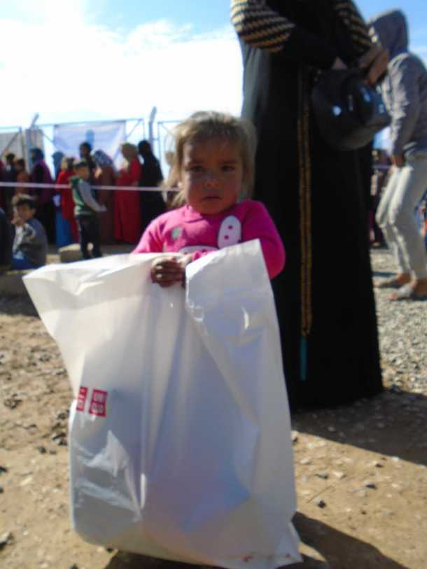 アラビア語で「日本のみなさんからイラクのみなさんへ」と書かれています。