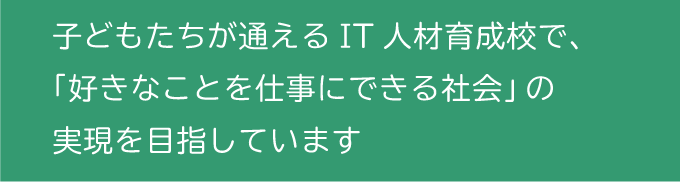 私たちは、このIT人材育成校を通じて、すべてのこどもが自分の可能性を最大限に引き出せるような学びの場を創り出していきます。