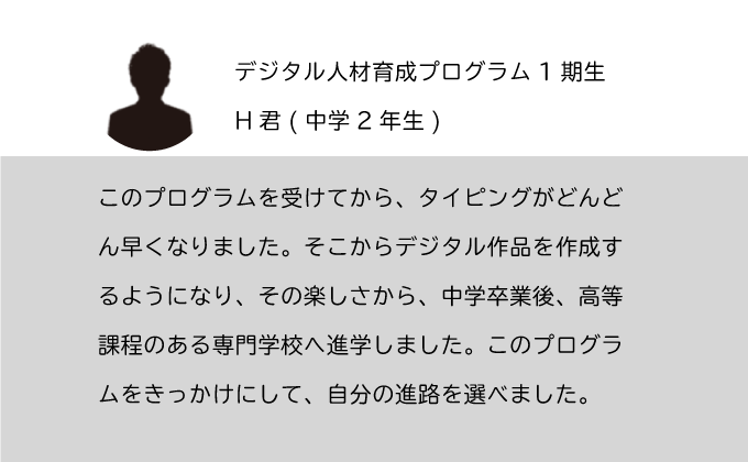 その結果、参加したこどもたちはスキルをどんどんと高め、無事プログラムを終えることができ、また進路をITが学べる専門校へと進学を決めた子もいらっしゃいました。