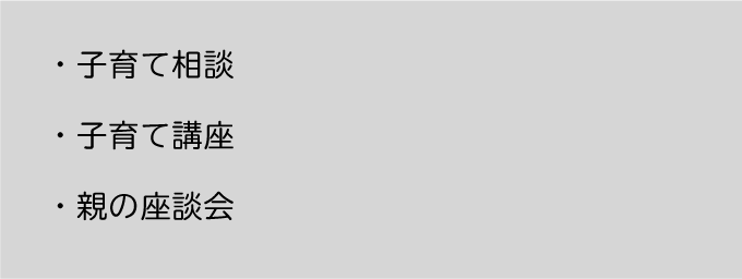 などを行い、子育て世帯からの相談や支援情報の提供、交流の場づくりにも力を入れています。