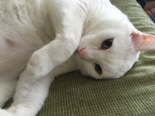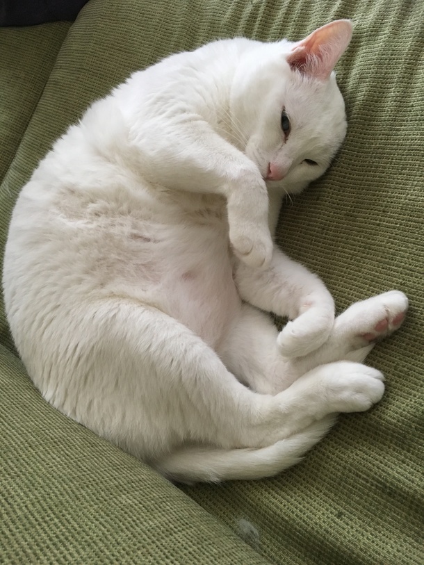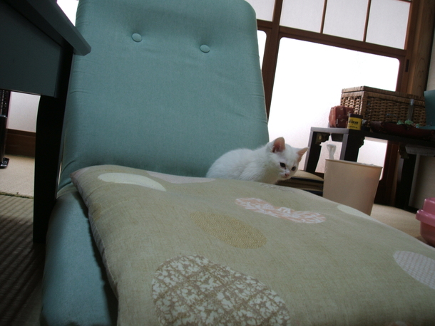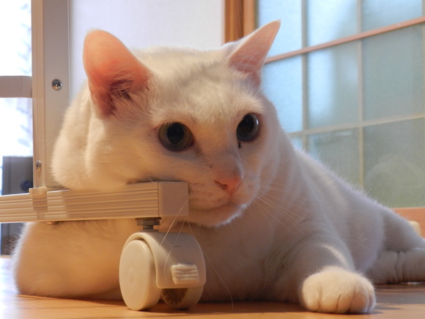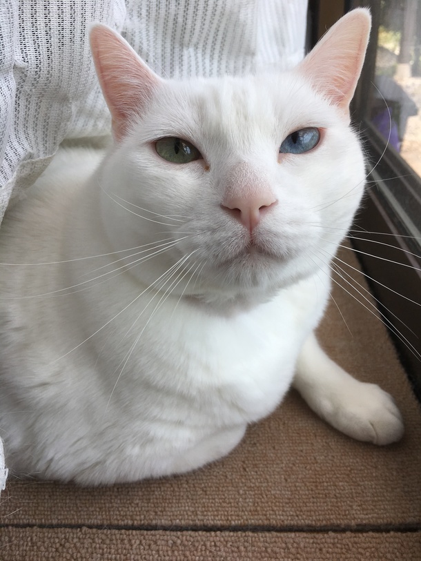 窓辺でおまけに眠くて目が細くなってますが、オッドアイです。